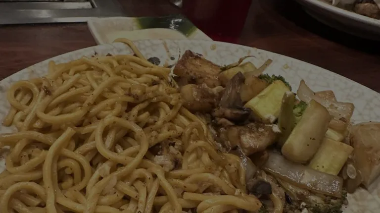 Cons: Salad dressing watery , service was slow Pros: Food was really good , pretty clean place , and the chef was entertaining ( really good food) . Steak was cooked perfect , a lot of food