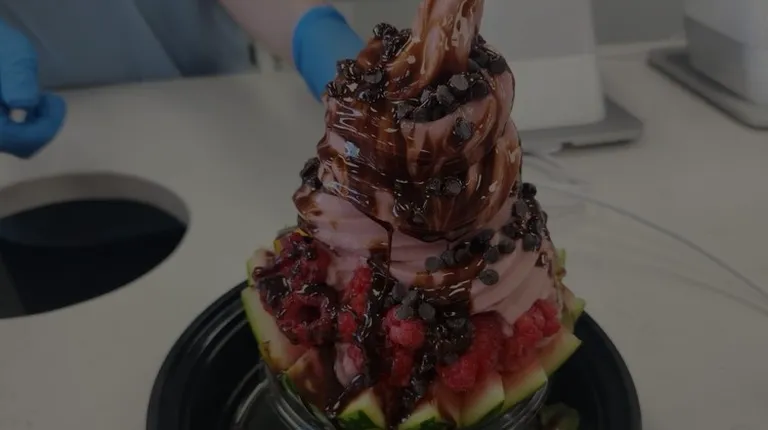 Acai fruit bowl - wild berry & peach Acai twist w/watermelon, mango, pineapple, crunched waffle cone and caramel drizzle.
