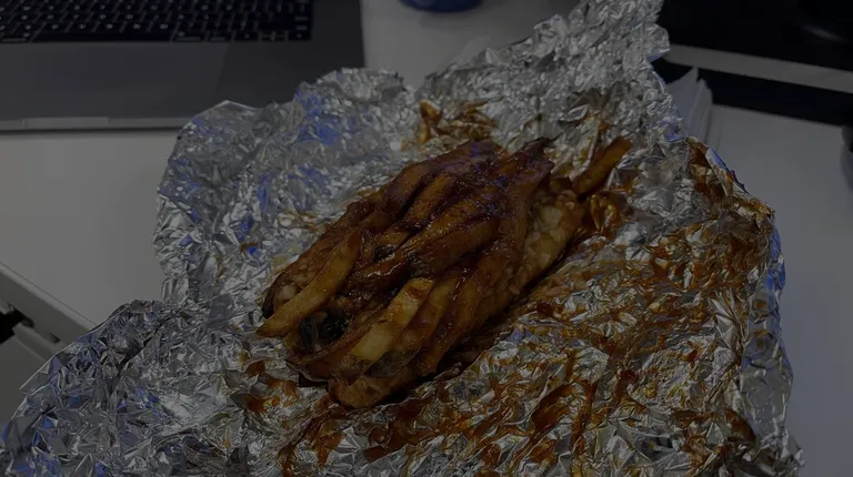 The Freddie Boy (beef polish sausage, fries, coleslaw, freddie's BBQ sauce on a bun. 9/14/2021 @ Cleveland Clinic Admin Campus Building #1.
