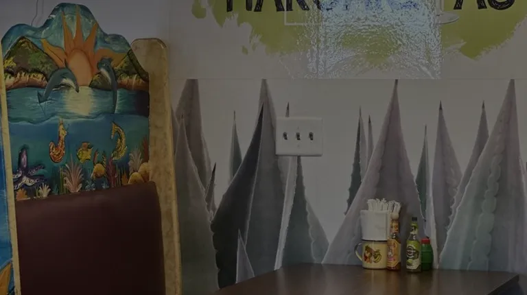 Booths have artsy Mexican themed headrests
