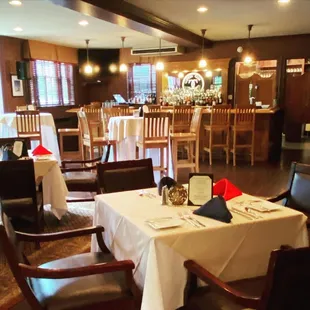 Food is very good but very pricey and portions are extremely small. I have been to the restaurant twice for small group holiday parties two years in a row - both times were mid-week so it was pretty quiet and not busy at all. The decorations and ambiance are nice and staff is very attentive, however both times I was there the wait staff wreaked of cigarette smoke everytime they approached the table. The smell was so strong each time - almost like they were out in the kitchen smoking between courses. This was a big turn off for me. Our small group always has a private room but dinner is served off of the standard dinner menu so I assume the portions and prices are typical of any meal here and the entire menu is á la carté.