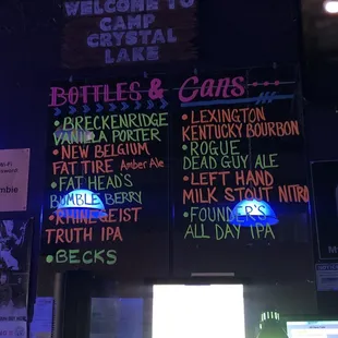 a bar with neon signs