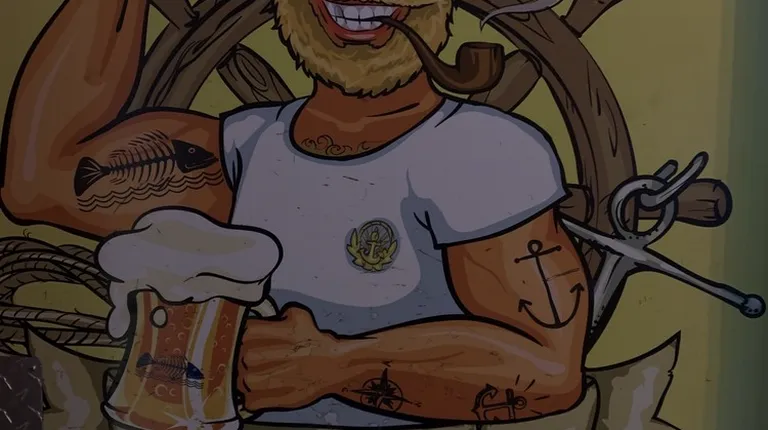 a fish skeleton on a sign
