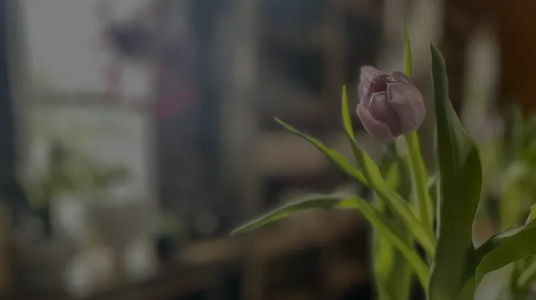 a row of wine bottles with tulips in them