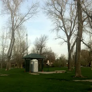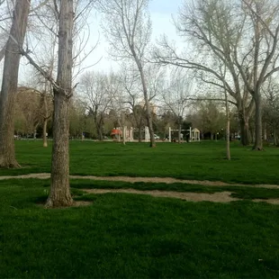 Well shucks, I didn't know this puppy even existed. It's small. And even though it's basically right off Speer, it's nicely separated from the traffic and set back into the adjoining neighborhood.There's a playground with a swing set, multiple picnic tables (though with no cover), a substantial green open area, a basketball court, and an on-site porto-john that is kept relatively clean. It's a quiet park filled people minding their own business, neighbors walking their dog, etc. We were the most raucous bunch there (put eight 30-somethings who still think they're 20-somethings in a park together after not seeing each other for over a year and things get buck-wild with really loud conversation and laughter- sorry people!).Turns out, also, that the sunsets in May are gorgeous in this park. The whole sky turns pink and the trees and grass are bathed in rose hues. Sure is purty.Not big enough to run in, but perfect for a small get-together, reading a book by yourself in some peaceful environs, or shooting some hoops.