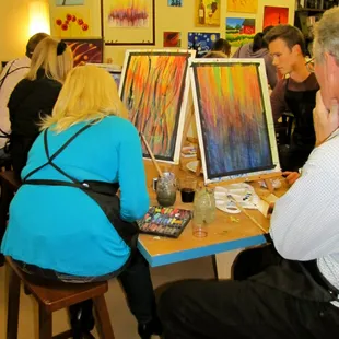 Super fun! The instructor is so sweet and calming. She owns the art gallery and she just exudes this pure happiness of being able to do what she loves for a living. Some of the other patrons were a bit snobbish and split between two tables. We had a group of 4 and they un-apologetically refused to readjust to allow us to sit together. Thankfully a group that was doing their own thing left right before out class started, so we were able to get up from the corners of the room and reconvene together. I was visiting home from where I live now and if I couldn't have painted with my loved ones I wouldn't have enjoyed myself as much as I was able to.