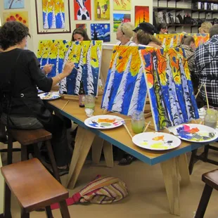 I've been here twice, once for a canvas painting class and once for wine glass painting. Both classes were AMAZING! Step by step instructions, even those less creative folk can have a great time. The ambiance is casual and very supportive :-) Thank goodness.