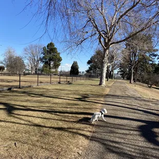 I decided to swing by here on the way home since I had my dog with me and was on that side of town.It's a nifty little spot! And I'm always a big fan of dog amenities.There is a small, freestanding fence every couple of yards to define the area. I took a picture so you can get an idea of what it looks like. Ultimately, it is not a fully contained enclosure, so if your dog is a runner, then maybe this is not the best park for you. For example, there's nothing but your control of your dog to prevent him from running up and into the parking lot each time a new dog arrives.But it's pretty. In fact, the only thing preventing it from being completely idyllic is the nearby heavy traffic on 6th Ave Pkwy.
