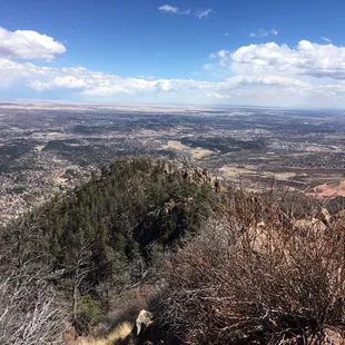 Looking for a decent hike in the Colorado Springs area aside from Pike's Peak or the Incline? Look no further...Blodgett Peak is closer to the Springs than both of those, and it's a relatively short hike (when compared to hiking Pikes Peak or any 14'er for the matter). The total altitude gain is about 2,000-2,500' and is about 4-5 miles round trip.The views from the top are actually quite nice and gives a much better perspective of the Springs, specifically all the neighborhoods that are literally at the base of the Front Range. Also offers a view looking North at the Academy and is close enough so that you can just make out people walking about there. The trail isn't extraordinarily well marked, but just aim up and you'll summit without a problem. There are areas of loose gravel/dirt which make getting down slightly more difficult but nothing hard.In short: A really nice hike close to home.Also, bonus fact: On the backside of the mountain, mid-way is an airplane that crashed in the 50's. The wreckage is still there if you feel like exploring