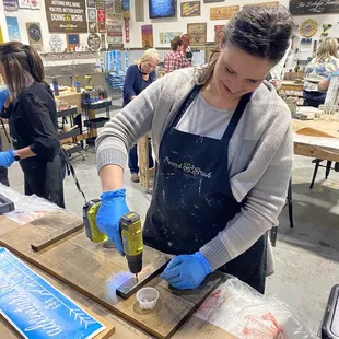 This is such a fun activity! I loved all the project choices. The instructions were very straight forward. Our assistant, Summer was wonderful and very helpful. I loved the project that I walked away with. My only complaint is that I wish there was better ventilation because the smell of the stain gave me a headache. But despite that I will absolutely be back!
