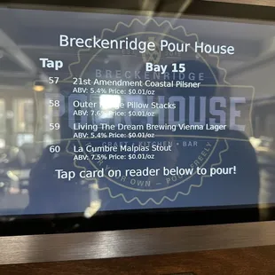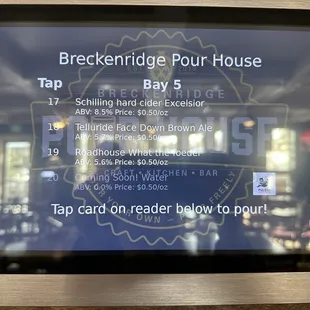 The Pour House has potential but really needs to step up their game and get organized before the busy season approaches--which is soon!We first visited the Pour House right after Columbus day and was told none of the taps were working...yet they still decided to open? Not really a good selling point if the thing that's supposed to make you unique is broken.We tried again a few days later hoping they fixed their taps. We stopped in and stood at the entrance for about a minute waiting for someone to greet us. Two employees were standing at the host desk and neither said anything to us as we stood there. After standing there a while, I just spoke up and asked if we could sit anywhere since they weren't going to tell us the process and there were no signs explaining the process either. We were handed menus and told to return back to the host desk to place our food orders. We found out we needed a card to work the taps. Out of the 64 taps they built, only 14 were working that night. I guess that's better than a few days prior when all were broken but....its really not that much better. There are a lot of TVs here (about 9) so this would be a great place to enjoy a game. They also have a lot of tables (both large and small). The place seems pretty large but they need more staff to handle the size. On the night we came, it was also the night of the spirit festival. There were about 20-25 people here but their staff seemed understaffed and overwhelmed. My boyfriend also said the bathroom looked terrible because the garbage can was overflowing with trash. I'm not sure how frequent they clean the bathrooms here but there should be a schedule for it.We tried their beer and their churros...both were okay...nothing spectacular. They really need to get organized, create a bathroom schedule, get trained, and get their taps working here. I wish them luck!