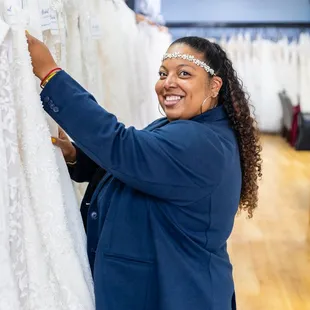 Queen B was incredible here! She made our experience so fun and went above and beyond to find everything I was looking for! They are flexible on prices and have a great price range for people looking for something affordable! I did not end up finding my wedding dress here, but the customer service was so great and the stylists are all so nice! One start knocked off only because our appointment was set for 12 and when we arrived it was closed with no lights on and no one inside. Another couple was waiting outside the door as well for their appointment. We waited around for 20 minutes and were about to leave, but finally someone came and opened up the shop. I would also say the shop needs a little updating.