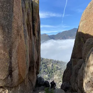Riding the mules above the clouds.
