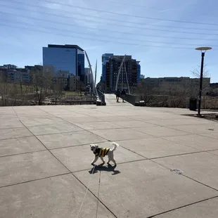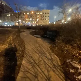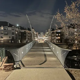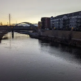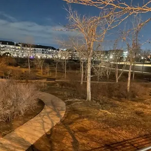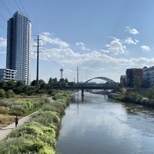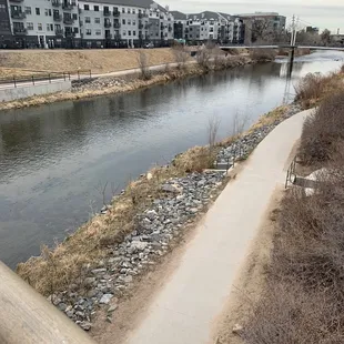 This is a very nice park located on the Highland Neighborhood side of the Millennium Bridge, right across from from Lakeside Park. he park actually has two sides. One side is called the Groves and has more of a nature feel. It is in a woodded area with native grasses and wetlands. This is the area the that runs right along the river and has benches stationed along its paved and natural trails that you can sit, relax and take it all in. There is a huge, and by huge I mean long, designer stairs that you can take up to get to the other part of the park where you with find more trails (all of which are paved), and green space. This side has a nice maze of paved paths with a huge island of green space that is popular among dog walkers. The green space could also be used to play catch, have a picnic, or even fly a kite. You will find a restroom facility in this area of the park and a picturesque bridge that crosses over the South Platt River and connects it to the adjoining neighborhood. Near the bridge is where you will find an elevated area that over looks the river and where you can also sit down and relax.Ain front of the park you will find a few entrances and a long promenade area that runs along Little Raven Street that offers numerous benches to sit on and relax. They pretty much offer views of the Millennium Bridge, Lakefront Park and passing traffic.This is park does not have a designated parking lot. You will find metered street parking and commercial lots within a reasonable walking distance. This is not a major destination park, but primarily a park that is used by dog walkers, joggers, walkers or people like me that just happen to stumble across it. All in all it is still a nice park for what it is and has to offer. It is a nice getaway from the hustle and bustle of the city. It appeared well maintained and pretty safe. I really enjoyed my time here.