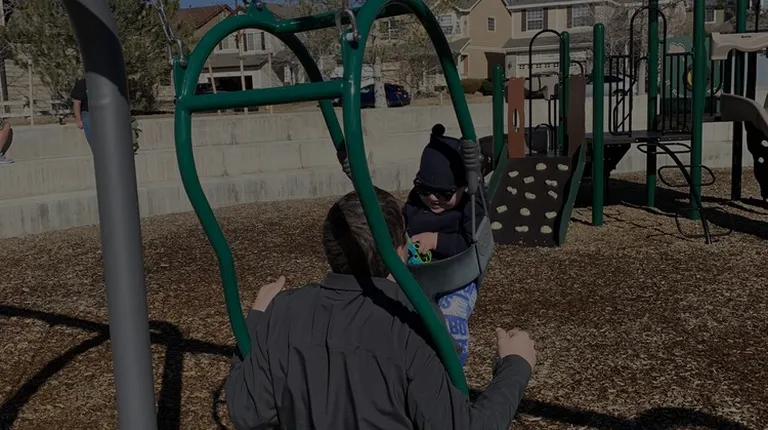 This is a great park! There's actually two playgrounds here, one smaller than the other but they're right by each other. One has a double swing so you can put your baby in one side, sit on the other side and swing them! Something I haven't seen a lot of at Parks is restrooms! There's two here and with change tables in them. There's also a path so you can walk around the soccer field that's in the middle and it also joins onto Piney Creek Trail so if you want to walk out the bottom of the park and down the side of the road you can go for miles.