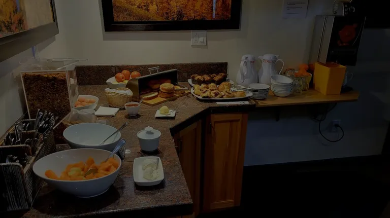 Great location within walking distance of many restaurants and businesses. The rooms are fairly basic, but there is ample seating in the common areas, and the guests have access to a small fridge. Coffee, tea and hot cocoa is also available throughout the day.I think what sets this place apart is its cozy atmosphere and extra little touches such as freshly baked cookies daily at 4pm, and complimentary red wine served from 4 to 5pm. The staff is also very friendly.The heated ski storage is incredibly convenient during the ski season, and the shuttle to the slopes is just a few steps away.While breakfast was good, the space is not set up for it and it can get crowded quickly. I wish they'd open earlier than 7:30 during ski season. The warm savory and sweet pastries were delicious, and there is yogurt, fruits, boiled eggs, toast, oatmeal and cereals. Enough for us to start the day off right!Overall, we'd definitely return when visiting Crested Butte!