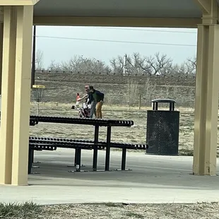 Fun with furry friends and many responsible pet parents. Bring a gallon of water for the small dog side because there isn't a water spout there. There is one by the restrooms outside the park though. There is no flush to the toilets. Very fun place but remember when the sun is high, there is no shade outside the cover table area. Lots of puppy parents leave goodies for you and your pups. This is the only free gated dog park for at least 5miles.