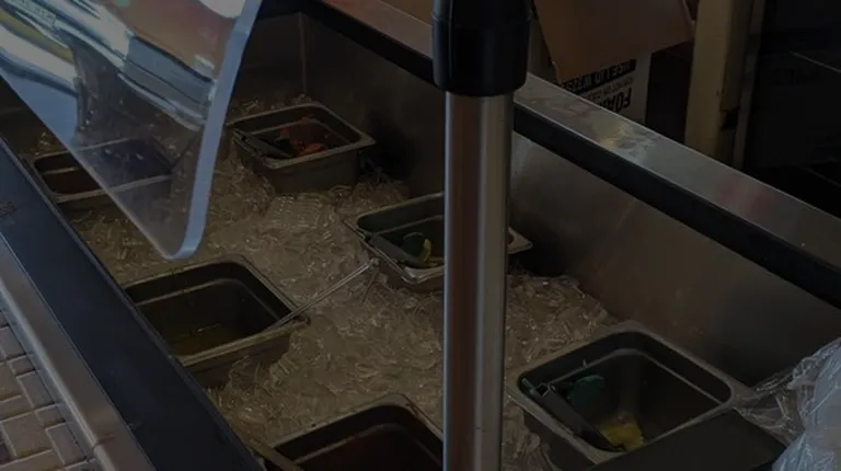 Health Code violation! Worker standing on food countertop with shoes on for several minutes and never cleaned counter off.