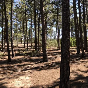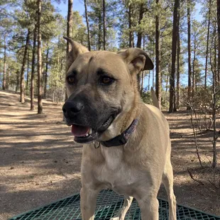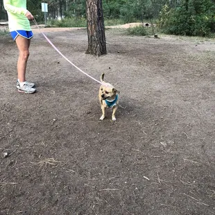 We love this park! It's so different than where we usually go. Tons of tall pine trees so great for shade. Good sized, great for exploring and sniffing all the things. There are also benches throughout park plus some dog agility equipment. Important things: There are several trash cans throughout however, the poop bag containers are "bring some to share" meaning there may not be poop bags available all the time. Definitely bring your own. Several people bring bowls and water to share but I would recommend bringing your own. There is a separate small dog area too.