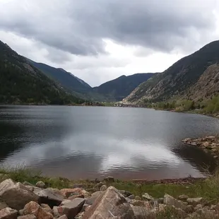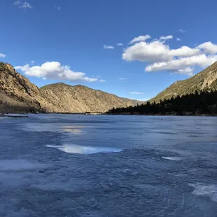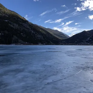 5/5 on a beautiful winter Tuesday afternoon. In January 2018, Georgetown Lake was frozen beautifully and completely while the weather was blissfully cool. From afar on I-70, you can see the lake from the left if you're going into the mountains from Denver. At first glance, we knew we had to seek it out. We loved the feeling of walking on frozen water haha. The highway connection was really confusing, so I recommend putting in "Georgetown Lake" into Google Maps to redirect yourself to this gem, because the correct exit is a bit tricky to find at first. From there, the small road will lead you to this beauty. There are plenty of parking spots once you veer off the highway roads. Be cautious, of course, if you venture out here when it's frozen. It may not be completely, but if you see people chillin' in the middle of it, and there are cones around the lake, you're in the clear of going out in the icy abyss. I would imagine this lake is fabulous in the warmer months too, the mountains hug it in a protective way and it gives a sense of peace, no matter the angle you face. Purely a treat for the eyeballs when the sun is shining or setting.