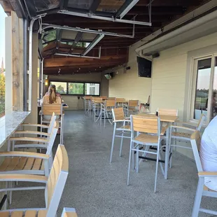 Did not play golf, just ate at the restaurant this week. Beautiful views!We started with the appetizer of shishito peppers and brussel sprouts with a chipotle mayo. Delicious!We both ordered a burger, I had the Swiss Mushroom Burger and the husband had New Mexico Burger. Both good.They don't have a wine list which I thought was strange, and they also do not show one online. I think that would help booze sales. The service was really good. I will be back, on a nice day.