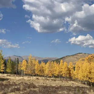 Just about an hour and a half from north Denver. It was a beautiful drive up and once at the pass...crowded. It might have been the 50-60 degree sunny day but it was crowded. The campground was closed so we walked through that area first. Once on the trails we climbed and enjoyed the trees. There were too many there that were not there for the hikes based on how they were dressed. We decided to go off the trail and climb along the power lines. The views were to die for and listening to the aspen leaves rustle was so relaxing.Worth the drive and the hike but it is steep and people, wear hiking boots not sneakers!