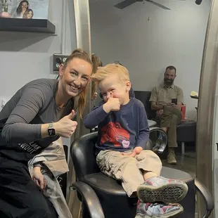 I've personally been seeing Heather for my hair care for over a decade! She's taken my hair along the spectrum of color, styled my hair from everyday glory to glam for big events. From the moment I walk in no matter the appointment, she greets me with a smile and refreshment, the music is playing upbeat jams and we are ready for transformation! During a particular tough season of stress induced hair loss, she styled my hair beautifully to help build my confidence around my trouble spots- while researching a hair treatment that would help stimulate follicle growth. She's always prompt, professional, and kind. She's thorough in color application, cut and style. The part I look forward to almost as much as my big reveal after my chair... the scalp massage at the wash basin! Oh my goodness her scalp massage sends my probs down the drain! But the real reason I'm here... the highlight of our decade of do's... the first haircut my son had. Heather made sure he was ready by talking him through the steps and allowing him to touch the different tools she'd use to keep him cool as a cucumber. He LOVED his first haircut and the opportunity to donate his luscious locks made us all smile HUGE! Her patience and expertise are apparent in her daily interactions with adults... but they SHINED when she helped our kid! I'm happy to say I found this great stylist and I'll continue to happily refer friends and family to her.