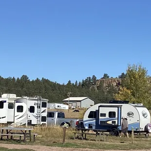 Perfect with the friendliest hosts. Full hook-ups that look new. They can ever fill your RV propane tank. Darling cabins and clean restrooms. Rustic camp sites that are perfect for people that spend their time site seeing. We have been visited by prairiThe owners are always there to help.