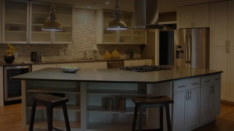 a kitchen with granite countertops