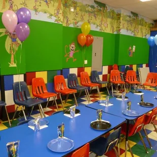 I was here for a 3 year olds birthday party and was really impressed. The kids had 1 hour to play then into party room for 30 minutes. (Our group paid for 15 minutes extra bc it was available) The workers will set up the party room for you- you just provide them with any special decorations you want. As a host you can order food from them or bring your own and pay a fee. The play area had lots fun activities for the kiddos. Most of it was sized big enough for a smallish adult to fit in there too. (Yes that was me!) Several slides, bounce house, ball Pit, costumes, etc. They do have a small area for those kiddos who are too small to run around.