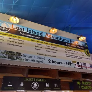 Lost Island Adventure offers something for everyone! The staff is friendly and helpful. Our family enjoyed a full day here, and had a wonderful time! We played two of the miniature golf courses. Both of them offered some fun challenges. After we were finished golfing, we watched our grandsons tryout the agility (ninja warrior) course - it was a blast watching them. They do have food and beverage offerings.
