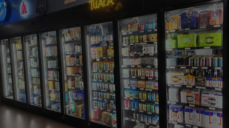 two refrigerators filled with drinks