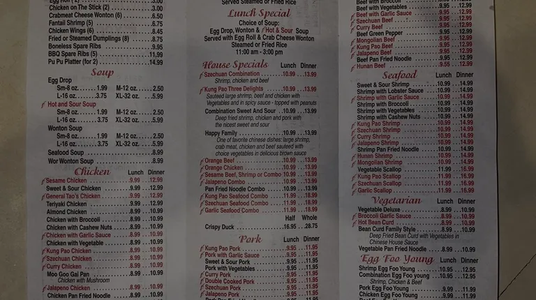 They LIE on their menu about their dishes. I recently bought dinner there for my husband and me simply because they are close. I bought food there a couple of times a year or two ago, and it was decent. Therefore I chose it again...What a mistake. First issue: I like wonton-egg drop soup. It's exactly what it says, a combination of the two. I asked the lady for it. Most places don't have it on their menu, but they're happy to make it. I understand if they charge more. So I asked, and got a simple answer: "NO". Seriously? I told her I'd pay extra. Same answer. She finally said she would sell me one wonton soup and one egg drop soup and I could mix them myself. Arguing nicely got me nowhere, so I said fine, I'd take 2 wonton soups and 1 egg drop soup. Her response! 1 wonton soup, 1 egg drop. I kept correcting her, she kept insisting that I only wanted 1 wonton! BTW, her English was just fine. When she told me dinner would cost $57 I was shocked and said NO SOUP. That solved the soup issue. On to the main courses. I ordered Beef and Broccoli for my husband. My choices were steamed rice or fried rice. I chose fried. An order of boneless spareribs. Then my order, Happy Family. I told her I wanted fried rice too. She charged me for an EXTRA fried rice! I only meant WITH my meal, not an additional one. Unfortunately, I didn't discover this until I was home. The rice has changed. It's like no Chinese fried I ever had. Dry, with no visible added ingredients. It's more like they took leftover steamed rice and browned it, then called it Fried Rice. I suppose that's legitimate, but most definitely not what I expected! I asked what came with the dinners, since the menu offered these as dinners, not as single orders of each. "Nothing". Wow. At their prices, those should have been meals, not just a container of each entree. "Dinners" should include soup, and most likely a second side dish such as an egg roll, etc. The only extra was a fortune cookie. But it was late and I was tired. I sucked it up and paid for our dinner. My Happy Family was advertised as containing crab. I asked if it was real crab, and the answer was yes. Nope! It was that awful imitation crab. I don't like it, and if she had been truthful I would have chosen something else. They should not lie about the ingredients. If there's no difference then why not use real crab? If it's supposed to be just as good as authentic crab then why do they feel the need to lie about using it? Why not be honest and say "imitation crab" on the menu? They're changing a premium price as if it is crab as well. There's a real difference in taste, texture, appearance, etc. and I don't like the imitation stuff. Luckily my dog does. They used the same slices of pork in the Happy Family as they used for boneless spareribs. They used to have REAL spareribs. Cooked in sauce and tasting just like the bone-in version. What they are using now is NOT the same cut of meat nor is it cooked the same. If I'd wanted SLICES of pork with some sauce dribbled over them I would have asked for that. So except for the Beef and Broccoli, which my husband pointed out had very little of each but a lot of sauce and other filler ingredients, NOTHING I ordered was as I expected or remembered. And the bill was a whopping $47! For 2 people. 2 Entrees and a few extra slices of pork. They even have the nerve to have a tip jar there. Tip? For what? Handing me a bag of food? Isn't that her job? Did she expect a tip for doing her job? Wow.I learned my lesson. I used to stop by occasionally just for an order of boneless spareibs. NEVER AGAIN! If you like paying premium prices for crappy food with the wrong ingredients you'll love this place. If you want to get what you ordered at a fair price look elsewhere! I would have given them ZERO stars, but it wasn't an option! I know inflation has gotten to all of us, but they've raised their prices significantly and skimped on the quality of their food. What a shame! They used to be a hole-in-the-wall little restaurant with decent food. Now?STAY AWAY!Summing it up: The food quality has diminished noticeably. They're taking shortcuts that affect the food in very noticeable ways. They lie about their ingredients. It's sad. They saved a few dollars and in exchange lost (more than) a few customers. Sad....