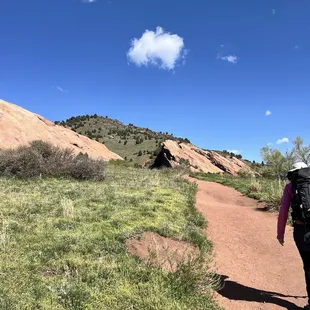 My new favorite place to hike!I haven't been too ambitious lately with finding new spots to hike thanks to the ever rising price of gas but this place? This place is good. I usually go to Red Rocks but wanted to mix it up a bit and turned into the parking lo instead of heading down the road to Red Rocks. When you make your way over to the trail, it's a bit gradual but then you get on the trail and it's fantastic with rolling trails constantly going up and down. I had my heart rate monitor on and was constantly at a rate that was kicking my butt but didn't leave my breathless. The best part was about 45 minutes into the hike where I stopped and had lunch while taking a look at the beautiful Red Rocks. The way back was easier since I knew what to expect full of people hiking, running, biking, etc. When I got back to my car I looked at my heart rate monitor and burned over 900 calories in under two hours so I was a happy gal.