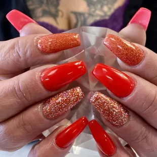 Very nice and not too expensive. There was no wait and I was helped right away. I showed my mail tech Amy a picture of the color and length I wanted and she was able to pick them all out for me and got started right away. It's just what I wanted. The environment was very inviting and clean I will come back. Only 4 stars because my cuticles did get a little cut up but that happens almost anywhere I go. $55 for what I got, I think she was saying it's normally $50 but I payed extra for getting extra colors but I am not sure if that is what was being said.