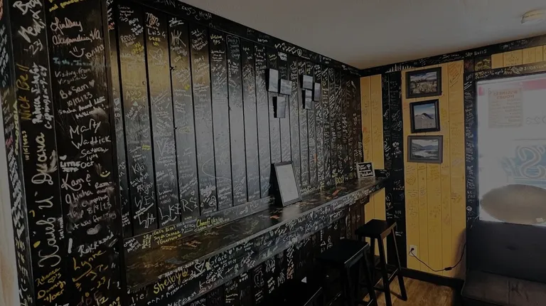 This is the coolest coffee shop around. They will let you write your name and where you are from on the walls. The coffee is sooo good. And the breakfast was amazing. The lady at the counter was super nice and helpful.