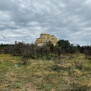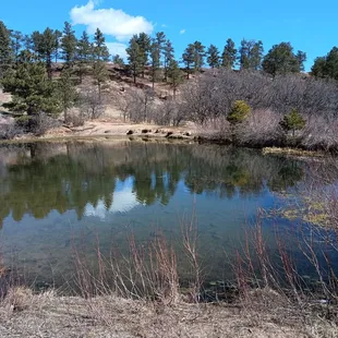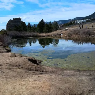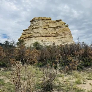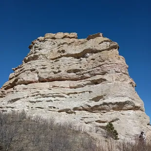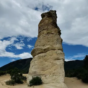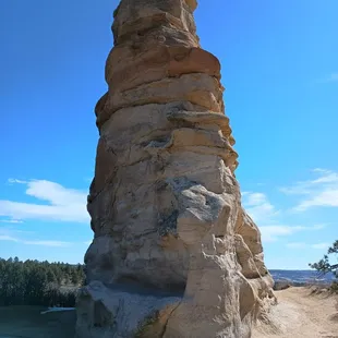Landmark in Monument, Colorado...My sister had never heard of this hiking trail and had never been in the area. Since it was nearby to our dinner place, I suggested that we take a look.When you get closer to Monument Rock, the road isn't paved anymore. There are signs, but my sister was able to see Monument Rock before the line of trees blocked the view. We went a bit past the trail entrance and turned the car around in the parking lot. It was 8pm and getting dark, so we left after we got a few photos.I'd get pictures of the pond if I returned!