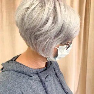 My hair is naturally grey but she lifts some of the darker parts to match the rest.