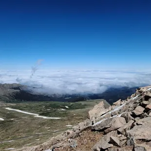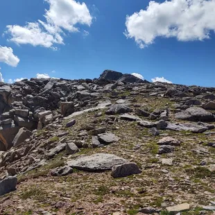 Had a great and challenging hike up Mount Evans. Don't be fooled by the not as challenging hike up to the summit of Mount Spalding a neighboring 13er. Once when you make your summit up to Mount Evans it's very difficult. The path is just a rocky side of the mountain that you find your own path up. It's steep, rocky, and feels like a really long way up to the top. Once when you make it up rocky wall, you will summit Mount Evans up a small ascent with all of the people who drove up the pass. It's crowded but worth it and the hike is beautiful. We walked down the road since the weather was starting to storm and we didn't want to be caught in a storm on the way down.