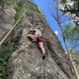 Learning to rappel during a half day climbing trip