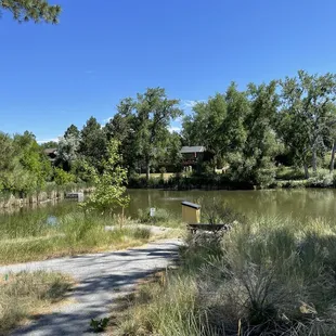 This is a cute little park that's accessible only by walking path in Greenwood Village. It's a small park that's made up of a pond, benches, and a little free library book exchange. I love starting over by Tommy Davis Park and walking over here. It's such a quiet spot to enjoy a moment just looking at the water.