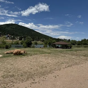 The little town of Palmer Lake is so charming. This little park is at the edge of town next to the Historic Palmer Lake sign. And across the street from the old train depot. Which is now a Dex's Hot Dogs. The lake itself is beautiful. There is a gravel trail completely around the lake. It is wide enough for two people to ride. Around the lake, there are several benches to take in the views. On the left side of the lake there's a small jungle gym and a few trees to hang your hammock. You can also play frisbee golf here. One of the only places I've actually seen permanent goals. You can't have anything motorized in the lake, which makes it prefect for fishing and kayaking. All in All just an all around great little gem in the town of Palmer Springs.