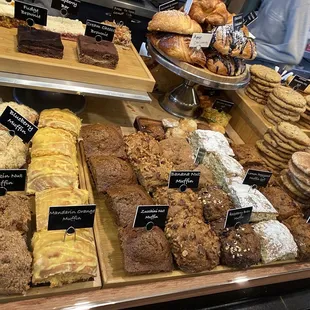 a display of pastries and desserts