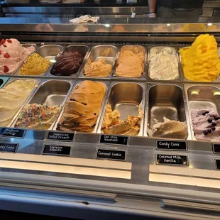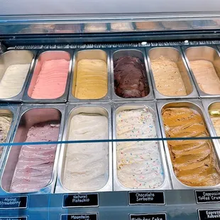 Lots of great flavors! We got to sample a few flavors from their selection. All were delicious. I ordered the fudge brownie shake and my hubs ordered the mint chocolate chip. We also had the blueberry gelato, which comes with a small cookie. It has an interesting tart and lemon flavor. You order inside, and they have a window outside where you can pick up your order. The outside seating area gets lots of sun and no shade, but there's plenty of seating across the street with plenty of shade.