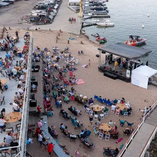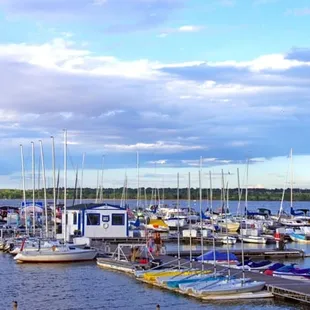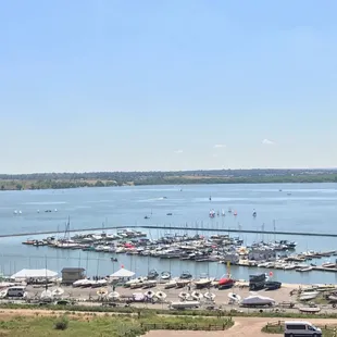 The Marina at Cherry Creek was well work 5 stars under the old owner, but since ownership changed a few years ago, it is just not the same. Yes, they have bar, and a great view, and a great location and good service, but they have a very limited selection of beverages, and only already prepared food, like a service station. They no longer have a kitchen.On this visit, the meager selection of beers on tap were flat and warm, and beer in the cooler was warm because the walk in wasn't functioning. On such a hot day, we wanted something cold. They have a mini fridge behind the bar, and the only cold thing in there was a small selection of canned beer, wine and Prosecco. We had one drink just for the view, then left.It is worth visiting for the view, and I'm sure their cold beverage issues will get fixed, but go if want a killer view.