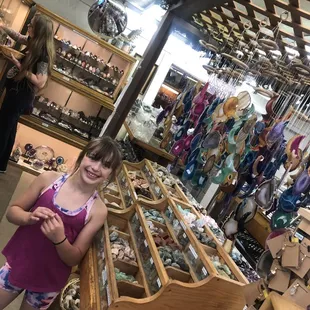 Came by here on a whim while on vacation and was happily surprised by the amount of crystals/rocks crammed into this shop and by the reasonable pricing. From the outside it seemed very small but inside there were a few different rooms that had a wide variety of product.I was very into the crystal jewelry section closer to the front door and was happily surprised to learn that they were having a 50% sale on all the jewelry items on the displays (not in the glass cases, sadly). Also enjoyed browsing the many free form crystals, the wind chimes, and the larger pieces that could be used for display purposes or for book ends. Don't miss the Native American art in the room to the right of the cash register!Crystals in hand, I was even happier when they took credit cards and that they had complimentary boxes for my new goodies that are perfect for gifting. Would come back!