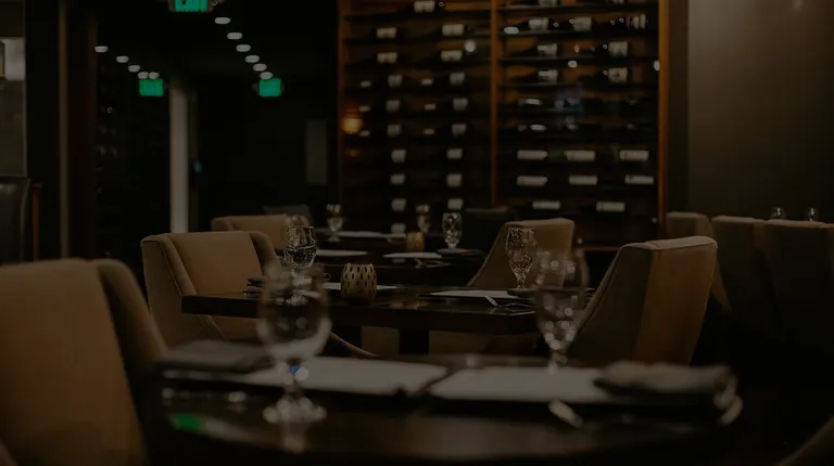 empty restaurant tables with empty wine glasses