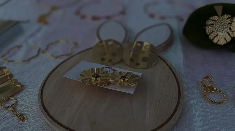 a pair of gold tone earrings