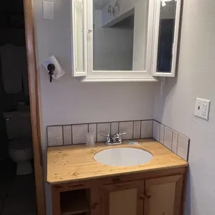 Baseboard and trim as well as the cabinet are custom made from an old fence out back!