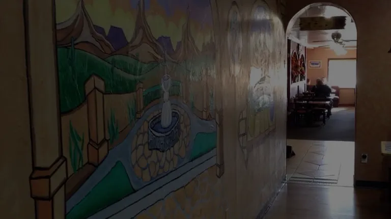 a hallway in a restaurant